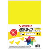 Цветной картон, А4, двусторонний, тонированный, 220 г/м2, 50 листов, желтый интенсивный, BRAUBERG, 128985