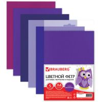 Цветной фетр для творчества А4 210*297мм BRAUBERG 5л., 5цв., оттенки фиолетового 2мм 660645