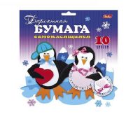 Цветная бумага, бархатная, самоклеящаяся, 10цв./10л., А5, Хатбер ПИНГВИНЧИКИ, в папке с европодвесом, 10ББХ5С_14472, 175-0955