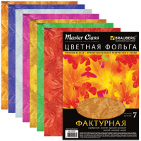 Цветная фольга А4 205*255мм BRAUBERG ФАКТУРНАЯ, 7л., 7цв., Листья