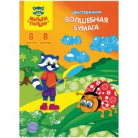 Цветная бумага, А4, офсетная, 16 листов 8 цветов, на скобе, ЮНЛАНДИЯ, 200х280 мм, АССОРТИ, 129557