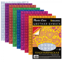 Цветная бумага САМОКЛЕЙКА 08 цветов BRAUBERG (8 листов), Сердечки, голографическая, А4 124724
