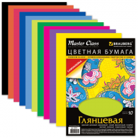 Цветная бумага САМОКЛЕЙКА 10 цветов BRAUBERG (10 листов), глянцевая А4 124721