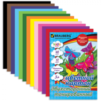Цветной картон BRAUBERG двусторонний тониров. 48л., 12 цв., "Kids Series", 124744