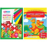 Цветной картон ArtSpace, 10л., 10цв., A4, лакированный, в папке 220684