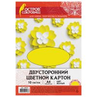 Цветной картон А4 ТОНИРОВАННЫЙ В МАССЕ, 10 листов, ЖЕЛТЫЙ, в пакете, 180 г/м2, ОСТРОВ СОКРОВИЩ, 210х297 мм, 129313