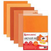 Цветной фетр для творчества А4 210*297мм BRAUBERG 5л., 5цв., оттенки оранжевого 2мм 660640