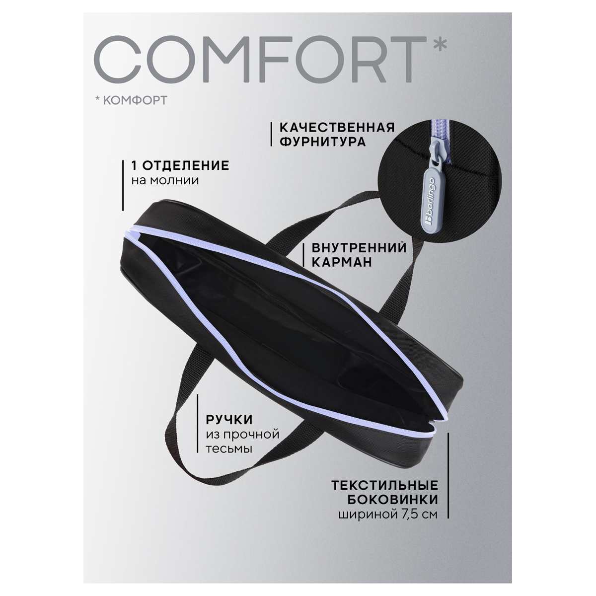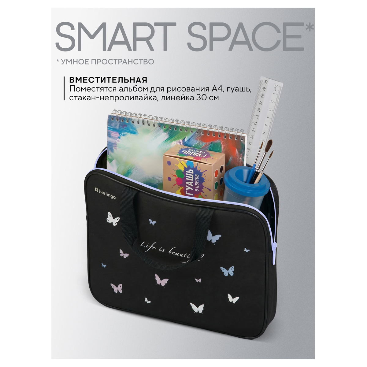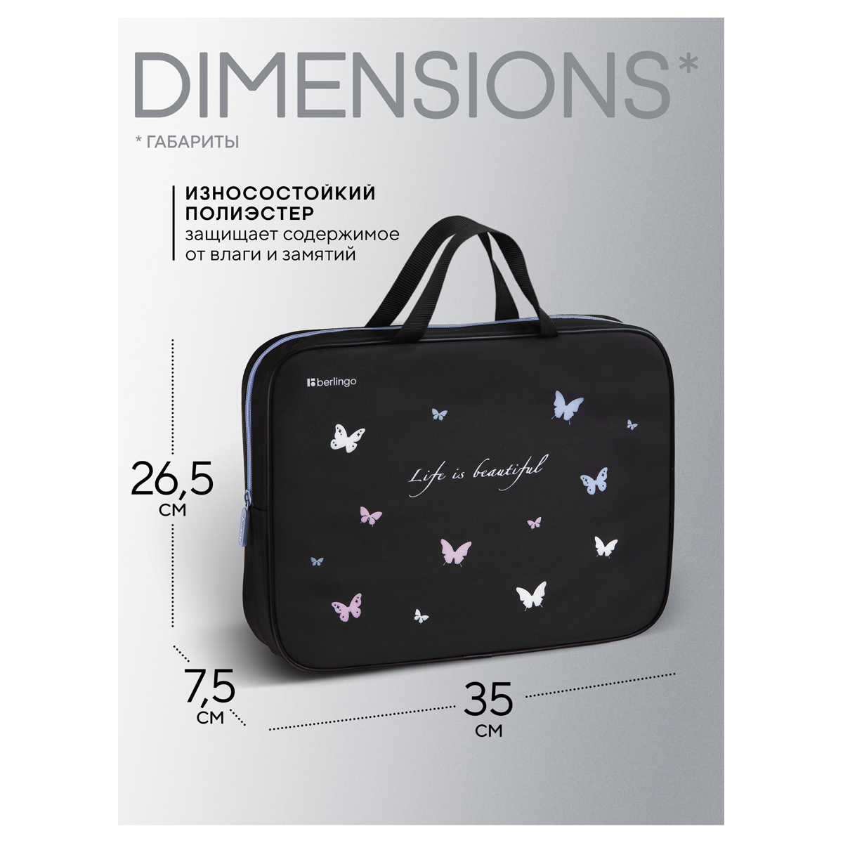 Папка текстильная с ручками 1 отделение, А4 Berlingo "Life is Beautiful", 350*265*75мм, текстиль, на