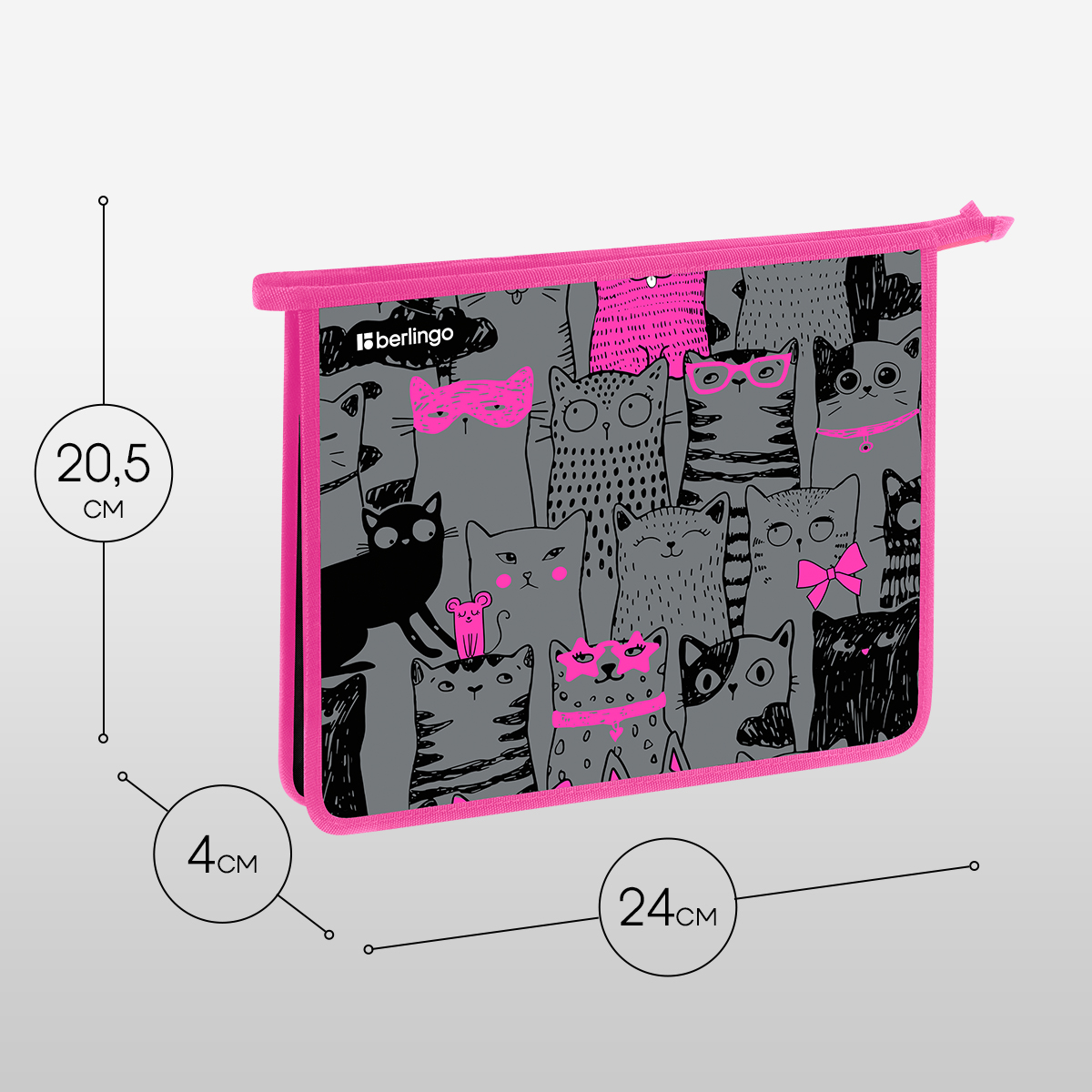 Папка для тетрадей Berlingo "Happy Cats" формата А5 предназначена для хранения учебных принадлежностей. Изделие размером 240*205*40 мм состоит из одного отделения. Застёжка-молния сверху надежно защищает содержимое от грязи и влаги. Края папки имеют тканевую окантовку. Изготовлена из высококачественного пластика. Дизайн папки понравится девочке. • Формат: А5; • Материал: пластик; • Количество отделений: 1; • Тип застёжки: молния.
