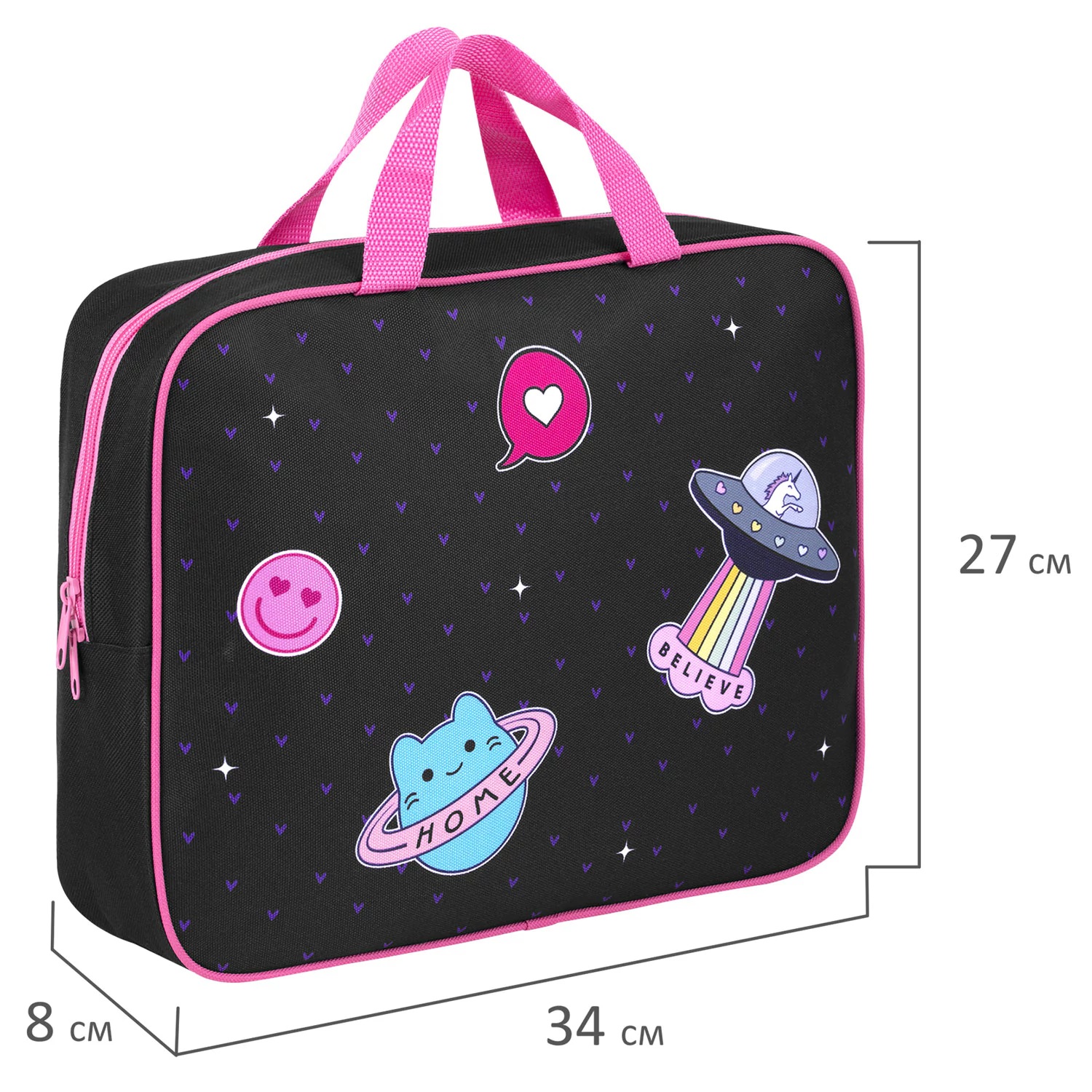 Папка для тетрадей BRAUBERG формата А4 с ручками предназначена для транспортировки и хранения канцелярских принадлежностей и учебных пособий. Папка защитит содержимое от замятий и повреждений. Идеально подходит для внешкольных занятий.Папка для тетрадей формата А4 с ручками для переноски изготовлена из прочного полиэстера. Внутри одно отделение, застегивается на молнию по верхнему краю.Размер – 34х27х8 см. Широкий формат товара позволяет разместить большое количество канцелярских принадлежностей для творчества внутри, в том числе стакан-непроливайку и листы формата А4. Папка держит форму за счет плотной окантовки по краям. Швы изнутри дополнительно обработаны тесьмой, что повышает ее износостойкость и прочность. Внутри папки есть карман, который удобно использовать для письменных принадлежностей и других канцтоваров.Упакована в плотный ПЭТ-пакет, который сохранит качество и товарный вид при хранении и транспортировке.