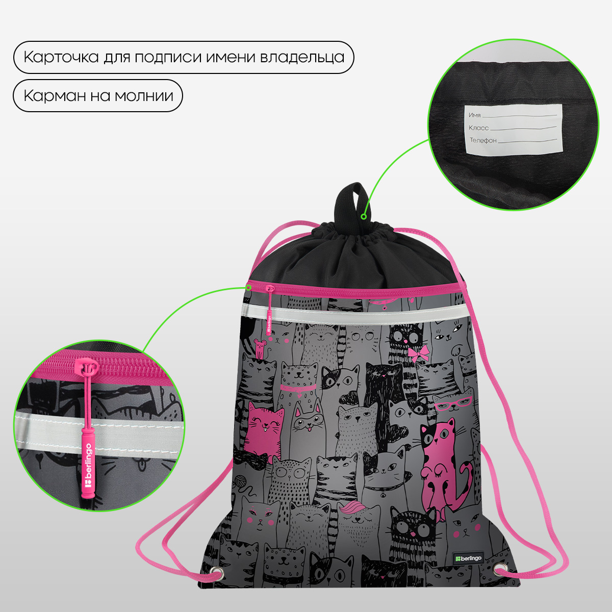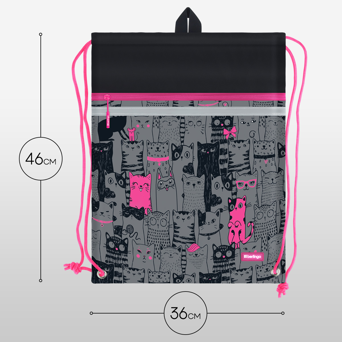 Мешок для обуви 1 отделение Berlingo "Happy Cats", 360*460мм, вентиляционная сеточка , светоотражающ 379493