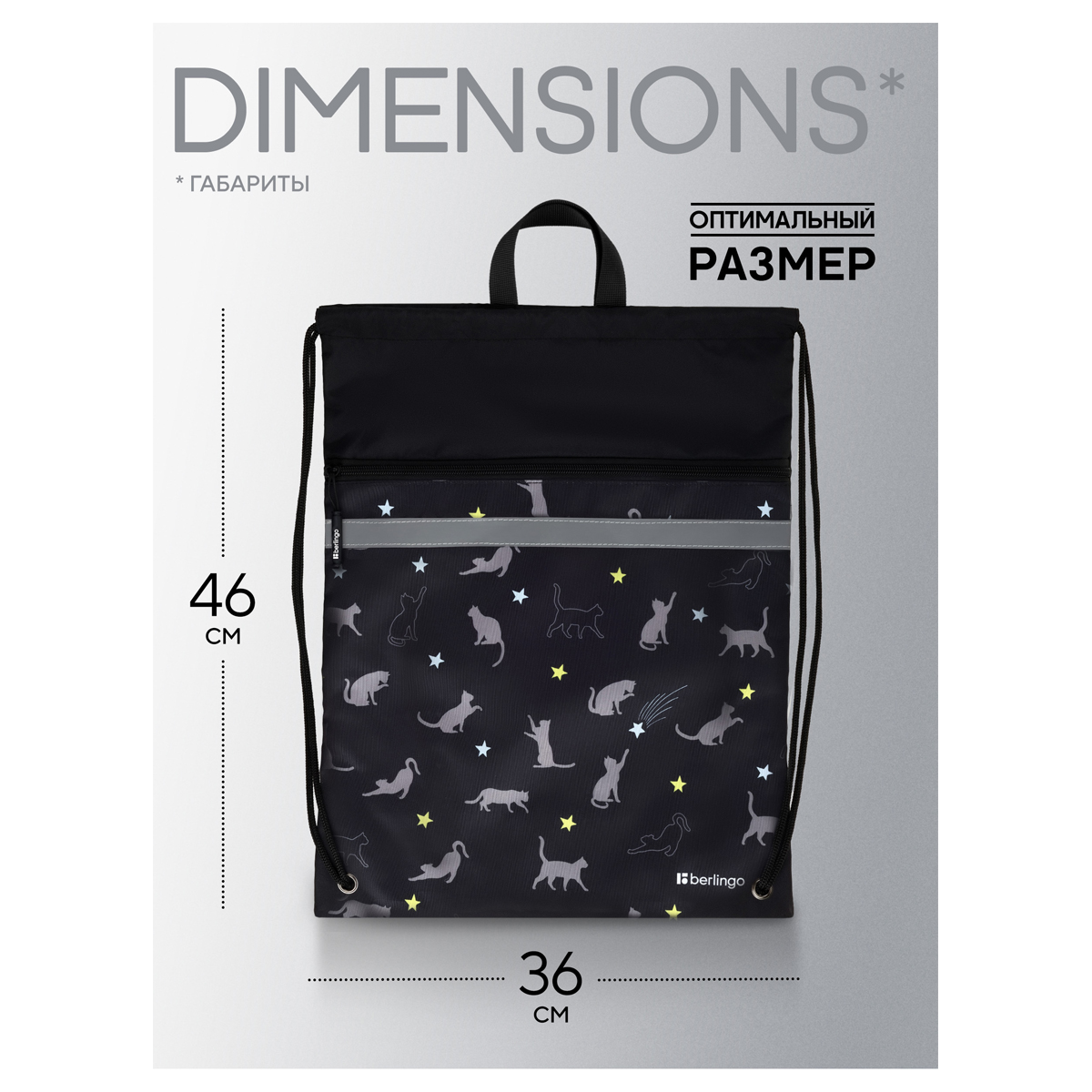 Мешок для обуви 1 отделение Berlingo "MEOW Galaxy", 360*460мм, вентиляционная сеточка , светоотражаю