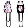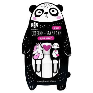 Скрепки-закладки для книг, арт. 71038 / 48 ПАНДА И ЕДИНОРОГ (2 шт. в наборе, размер: 19х63; 18х62 мм, материал: металл, ПВХ; цвет: чёрный, малиновый, белый; особенности: наконечник фигурный из ПВХ, ПВХ-оплётка; индивидуальная упаковка: подложка с европодвесом из мелованного картона + ПЭТ-пакет