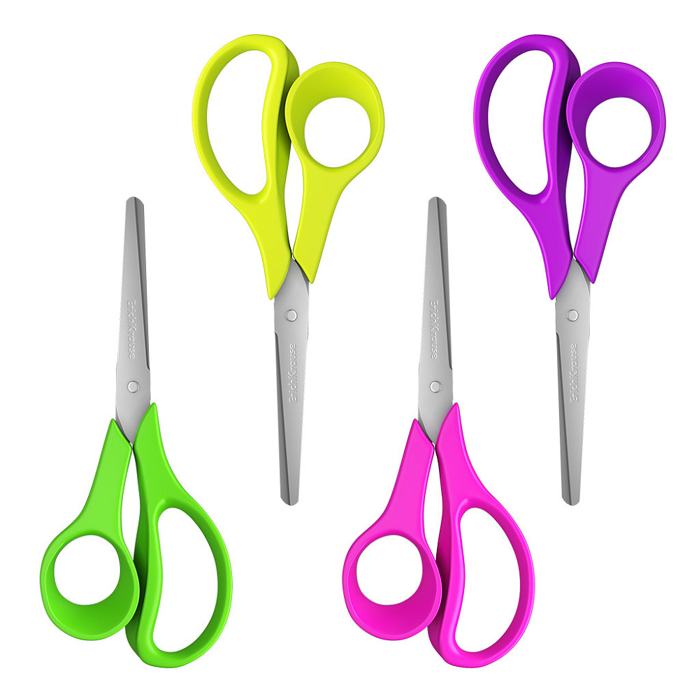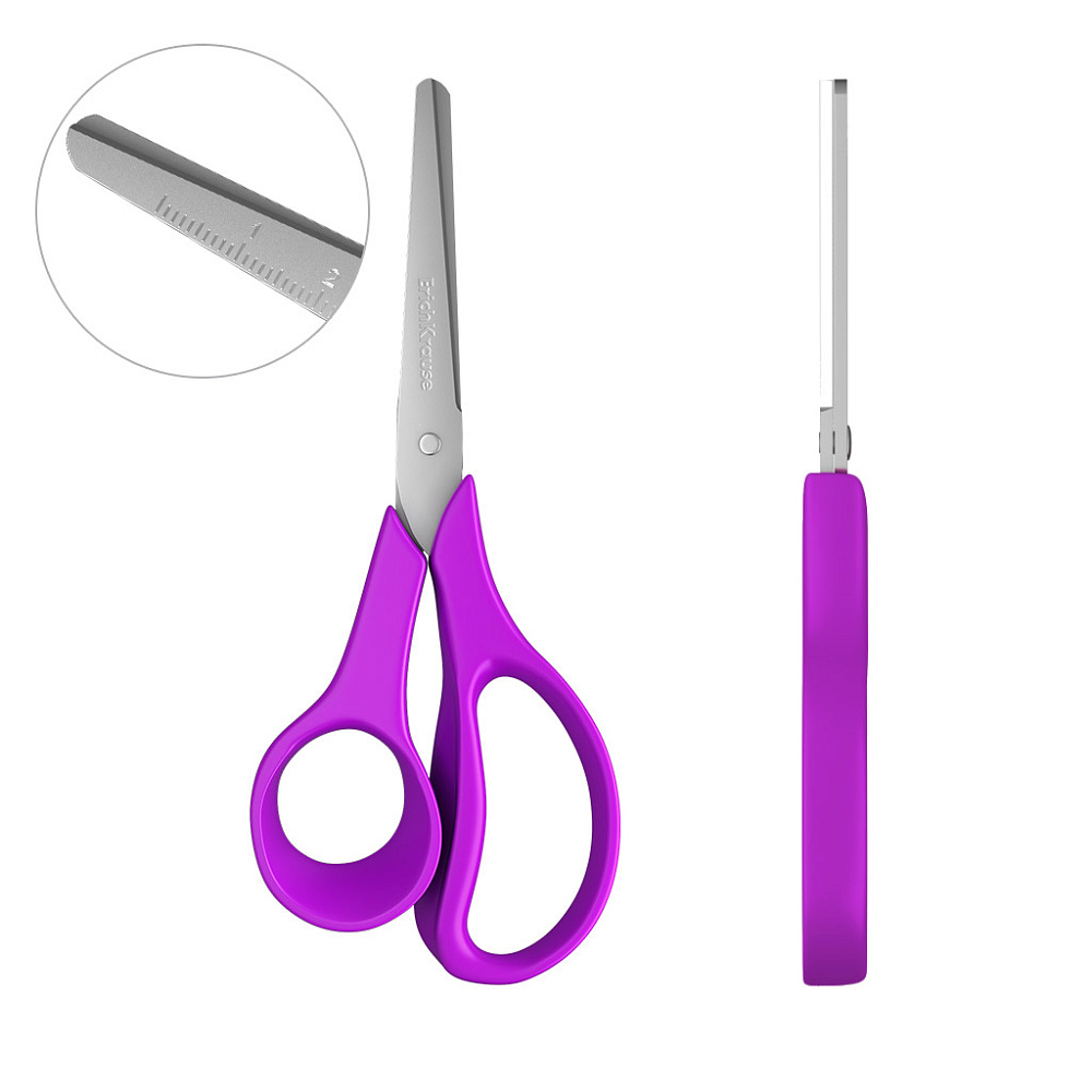 Ножницы с лезвиями из высококачественной нержавеющей стали с безопасными закругленными концами лезвий и линейкой, обеспечивающей точность резки. Не ржавеют. Ручки эргономичной формы из ударопрочного пластика.