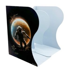 Подставка для книг - держатель на полку DE-222 INTELLIGENT "Космос" металл, 19х15см, белая с рисунко