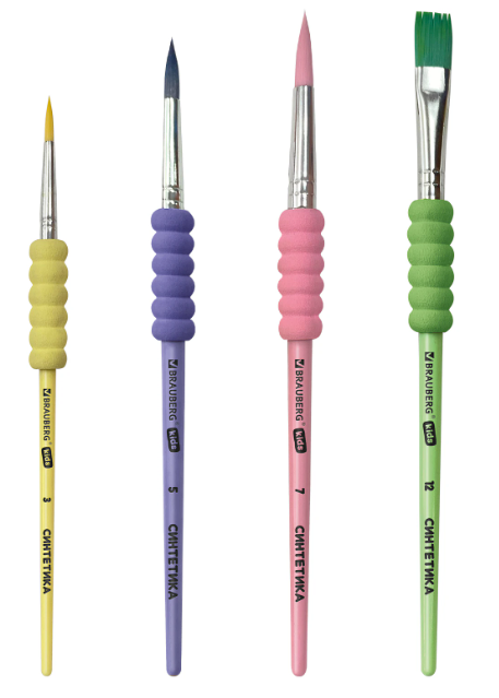 Описание: Набор из четырёх кистей разного размера c мягкой EVA-вставкой BRAUBERG KIDS позволяет начинающим художникам решать любые творческие задачи в детском саду, школе и дома.Кисти из синтетики отлично впитывают и отдают краску, хорошо держат форму, долговечны и надежны. Благодаря кистям № 3, 5, и 7 ребенку будет комфортно прорисовывать мелкие детали. Кисть № 12 позволит делать более крупные мазки и линии. Пластиковую рукоятку c мягкой EVA-вставкой удобно держать в руке.