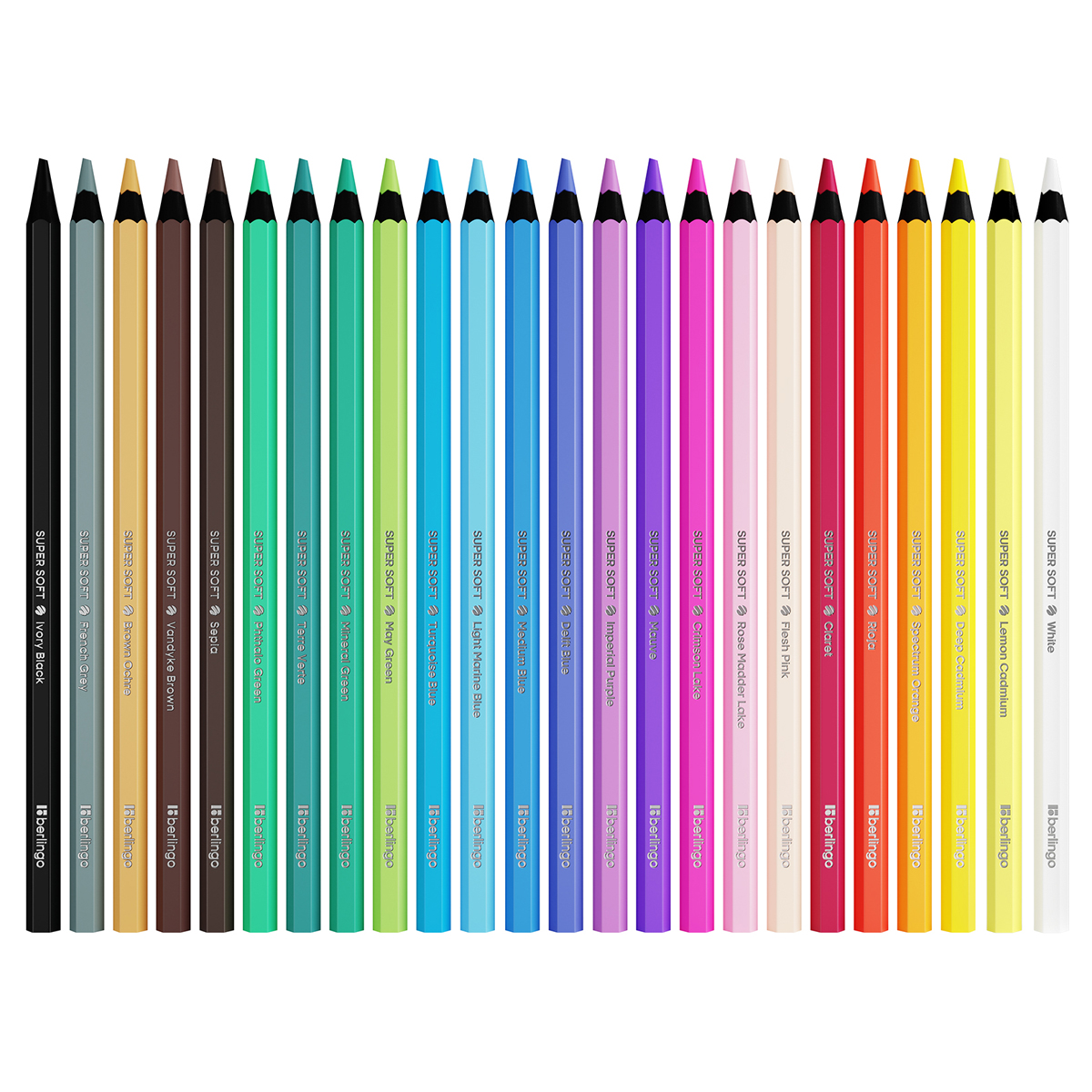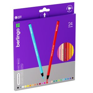 "SuperSoft" - линейка качественно новых цветных карандашей Berlingo. 24 цвета. Черное дерево. Шестигранная форма. Указание цвета на каждом карандаше на английском языке. Поле для подписи имени владельца на каждом карандаше. Упаковка в плотную матовую картонную коробку со склеенным европодвесом. Грифели высочайшего стандарта качества 8А, являющегося максимальным для нехудожественных цветных карандашей. Мягкость письма, сравнимая с рисованием маслом и пастелью. Яркие насыщенные цвета, обладающие превосходной смешиваемостью. Увеличенная до 4 мм толщина грифеля для безупречно комфортного раскрашивания. Уникальная формула и технология производства грифелей, в результате которой достигается одновременно удивительная мягкость письма и прочность, позволяющая грифелю выдерживать даже сильное нажатие под углом 45 градусов. Специальная проклейка, предотвращающая поломку грифеля внутри карандаша при падении. Стойкость к повреждениям. Корпус из древесины высшего качества, прошедшей тщательную обработку. Материал, сохраняющий свою прочность и легко поддающийся ровной заточке без усилий. Уникальная антибактериальная обработка на специализированном оборудовании, гарантирующая безопасное использование продукции детьми.