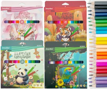 Карандаши 24 цв. JOOYDOO QD-31064-24 Деревянные, трехгранный корпус, заточенные, в к/к