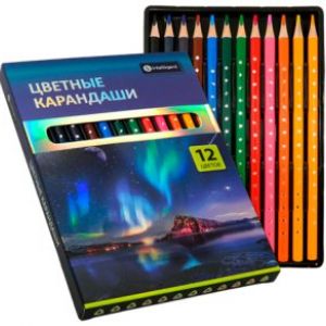 Набор карандашей цветных 12 цв. INTELLIGENT DN-7901 Трехгранные, деревянные, заточенные, в к/к