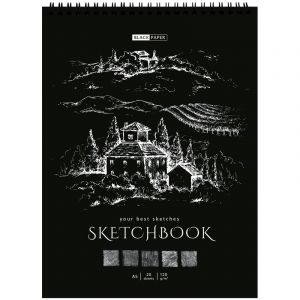 Скетчбук для маркеров, бумага ВХИ 200г/м2 145х205мм, 40л, гребень, тв. обл. ЧЕРНАЯ, BRAUBERG, 115079