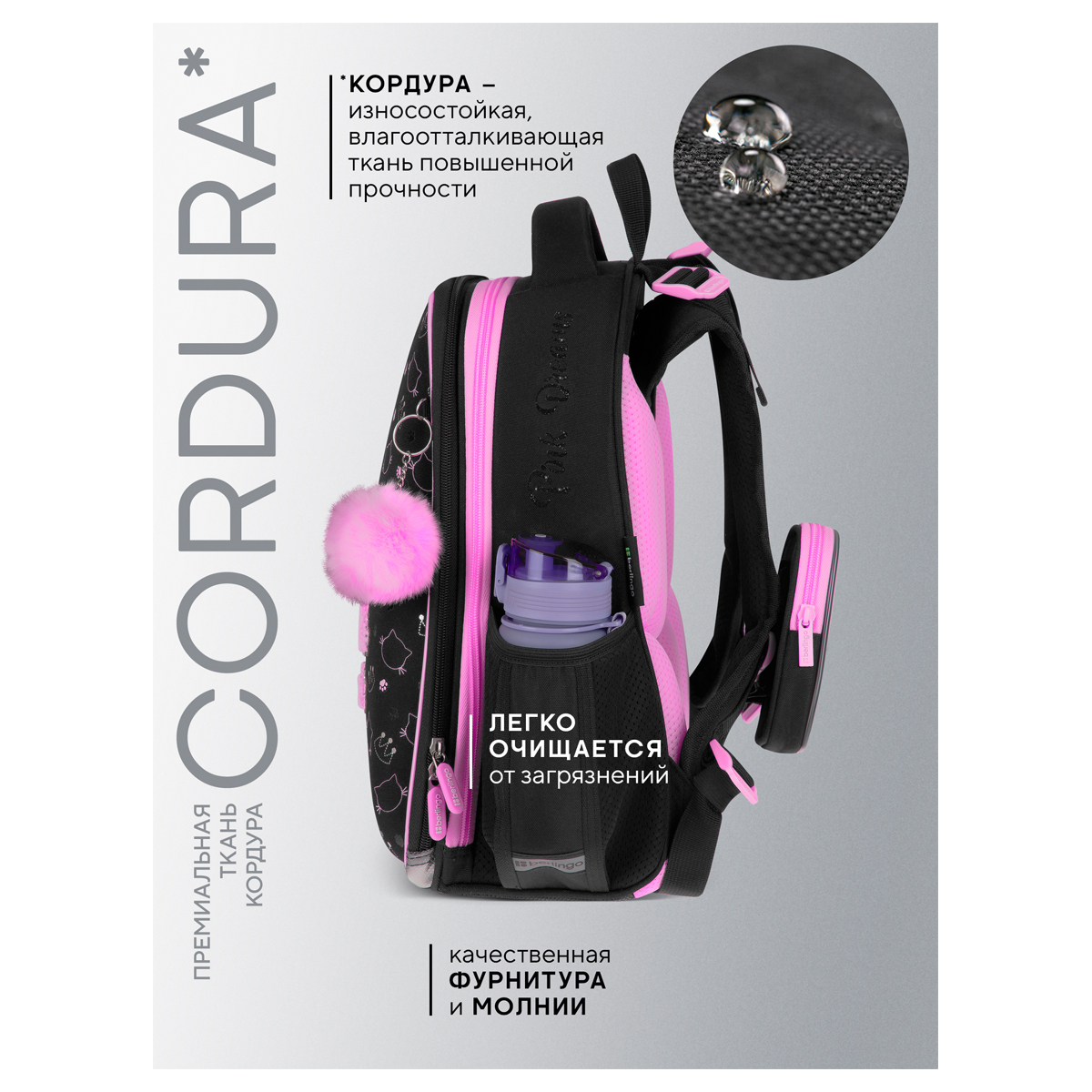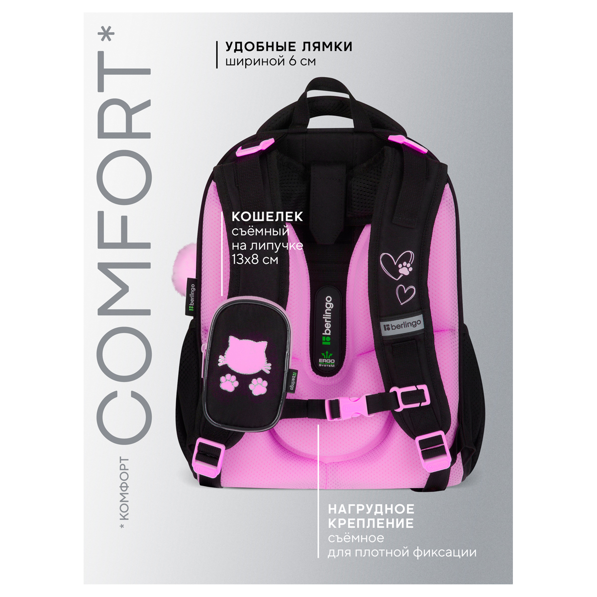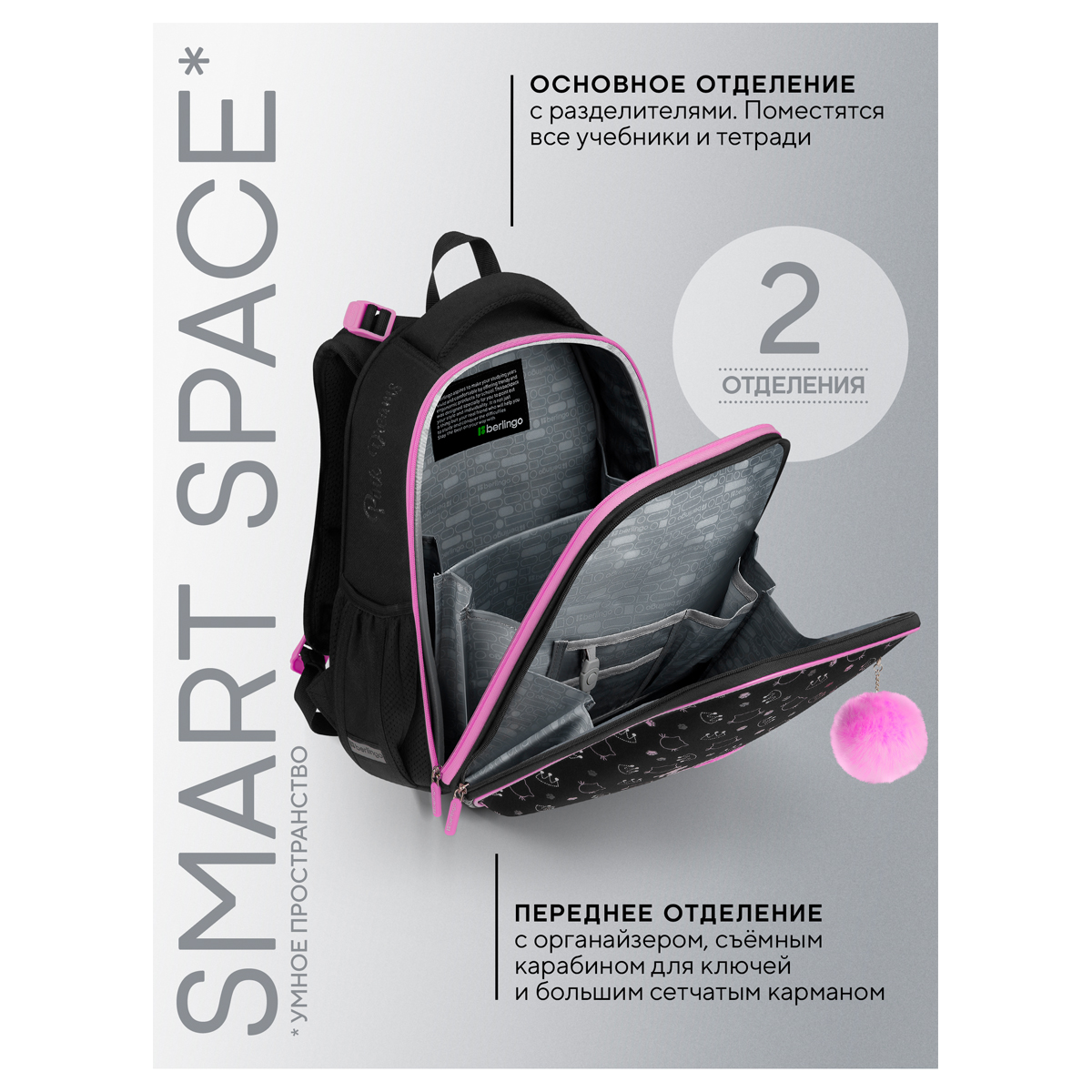 Описание: Эргономичный ранец Berlingo серии Expert размером 37*28*16 см подходит для детей младшего и среднего школьного возраста. Модель выполнена из экологичного ЭВА-материала с покрытием из высокопрочной нейлоновой ткани кордура, которая обладает водоотталкивающими свойствами и легко чистится. Ранец имеет 2 отделения, 2 боковых кармана на резинке, съемный кошелек на лямке для быстрого доступа к необходимым вещам. Внутри предусмотрены разделители для учебных пособий, органайзер для письменных принадлежностей, карман для мобильного телефона, съемный карабин для ключей и именная карточка для подписи. Благодаря анатомической вентилируемой спинке, регулируемым по длине и высоте лямкам, а также нагрудному креплению ранец плотно фиксируется на спине ребенка, что помогает равномерно распределить нагрузку и сохранить правильную осанку. Уплотненная мягкая ручка и петля для подвешивания к парте делают ранец очень удобным. Дно выполнено из водонепроницаемого материала с пластиковыми ножками для защиты от влаги. Световозвращающие элементы на лямках, передней и боковых частях ранца обеспечивают безопасность ребенка в темное время суток. Вес ранца менее 1 кг.