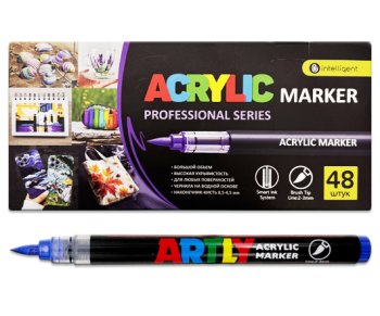 Маркер акриловый 48 цв. DN-45/DO-8870/DO-703 2-3мм, кисть, круглый корпус с индикатором, в к/к