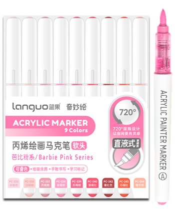 Маркер акриловый 9 цв. DO-581 "Розовые" 1-5мм, кисть, круглый белый корпус, в уп ПВХ