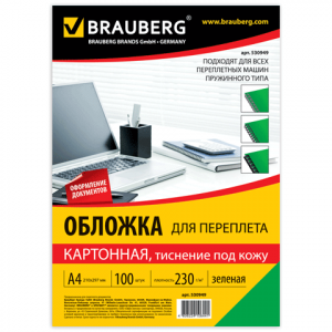 Обложки д/переплета BRAUBERG, КОМПЛЕКТ 100шт, (тисн.под кожу), А4, картон 230г/м2, зеленые