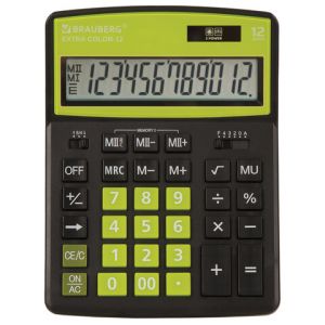 Калькулятор настольный BRAUBERG EXTRA COLOR-12-BKLG (206x155 мм), 12 разрядов, двойное питание, ЧЕРНО-САЛАТОВЫЙ, 250477