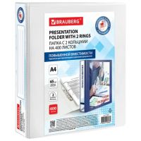 Папка ПАНОРАМА на 2 кольцах, ПРОЧНАЯ, картон/ПВХ, BRAUBERG Office, БЕЛАЯ, 65 мм, до 400 л., 271847