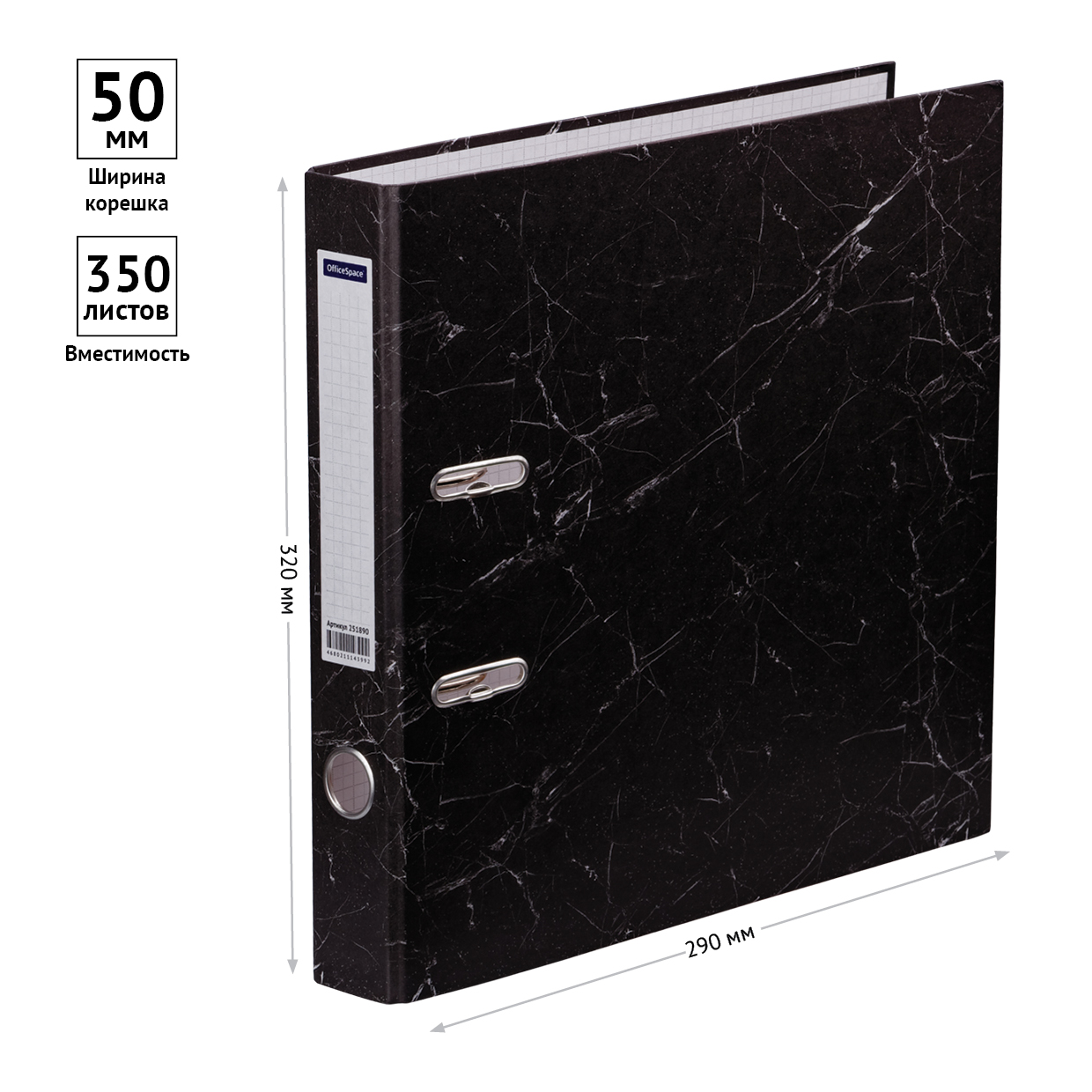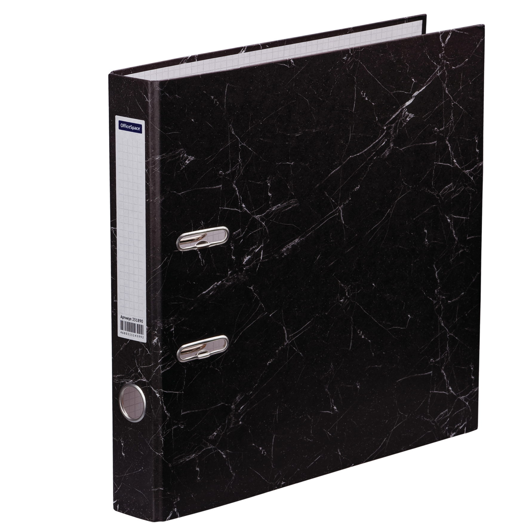Папка-регистратор OfficeSpace 50мм, мрамор, черная, бюджет 251890