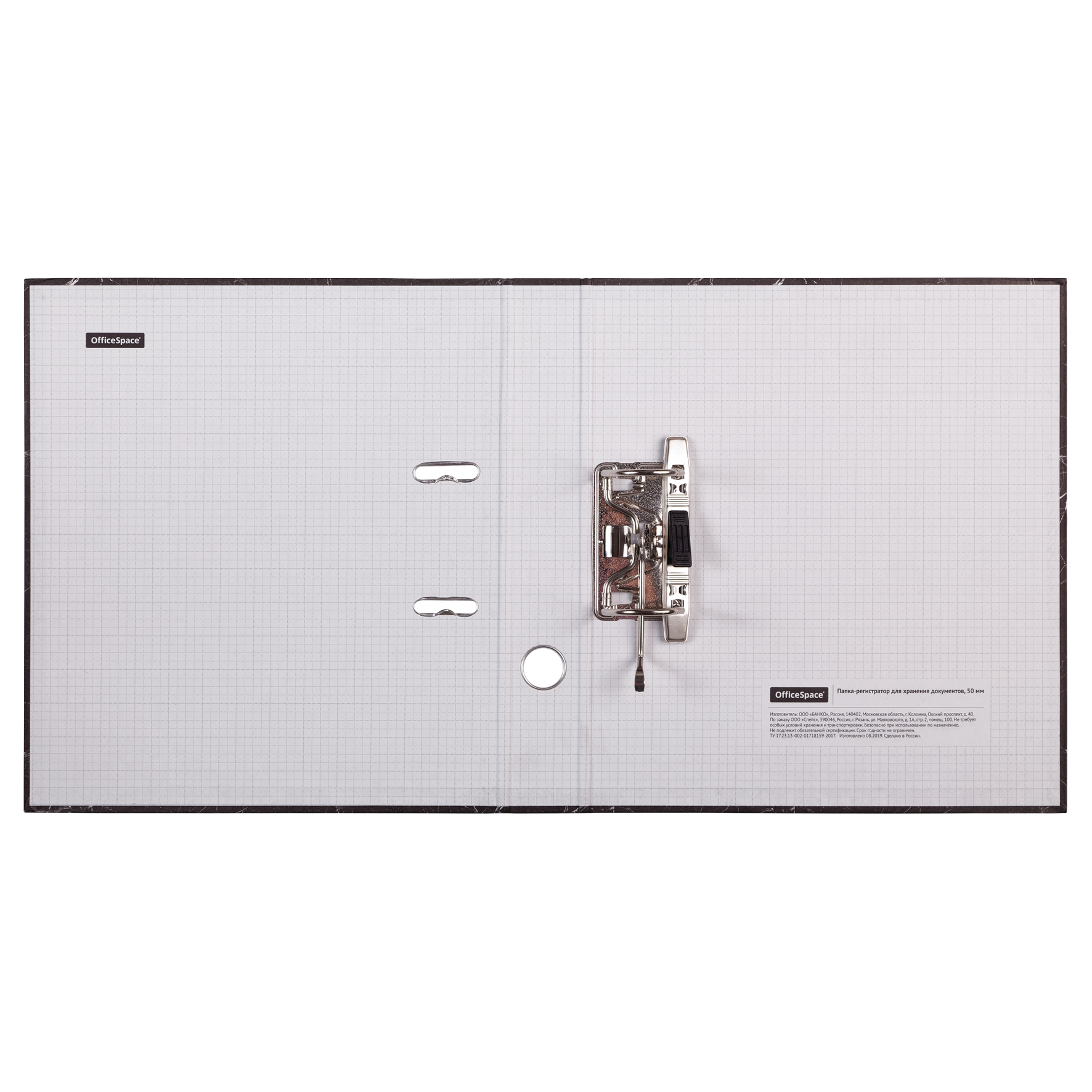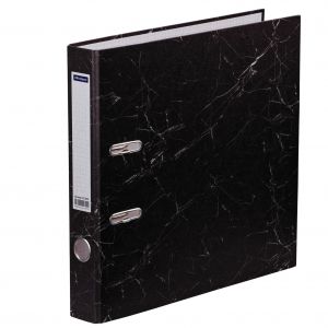 Папка-регистратор для хранения документов, металлический арочный механизм, покрытие офсетная бумага. На корешке этикетка для записей. Формат А4+. Ширина корешка 50 мм. Цвет «черный мрамор».