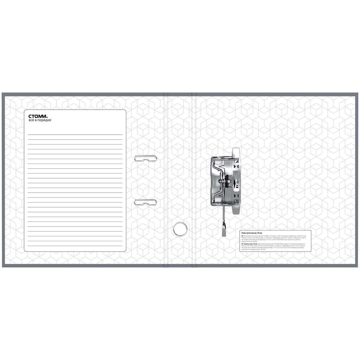 Папка–регистратор «СТАММ» серии «Стандарт» размером А4 (320*290*50 мм) с обложкой из жесткого износостойкого картона с односторонним покрытием из бумвинила. Вместимость папки – 450 листов, ширина корешка – 50 мм. Цвет – серый. Конструкция разработана с учетом всех особенностей эксплуатации. Папка выгодно отличается надежным арочным механизмом из качественного металла, наличием кармана на корешке со сменным информационным ярлыком для маркировки, полем для записей на внутренней стороне обложки и отверстием для удобного снятия с полки. Папка предназначена для транспортировки, упорядочивания и хранения бумаг. • Вместимость, в листах: 450; • Формат: А4; • Цвет папки: серый; • Ширина корешка: 50 мм.