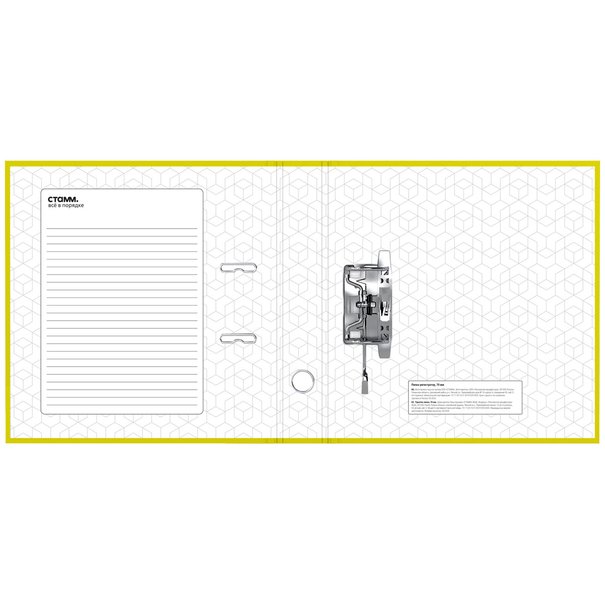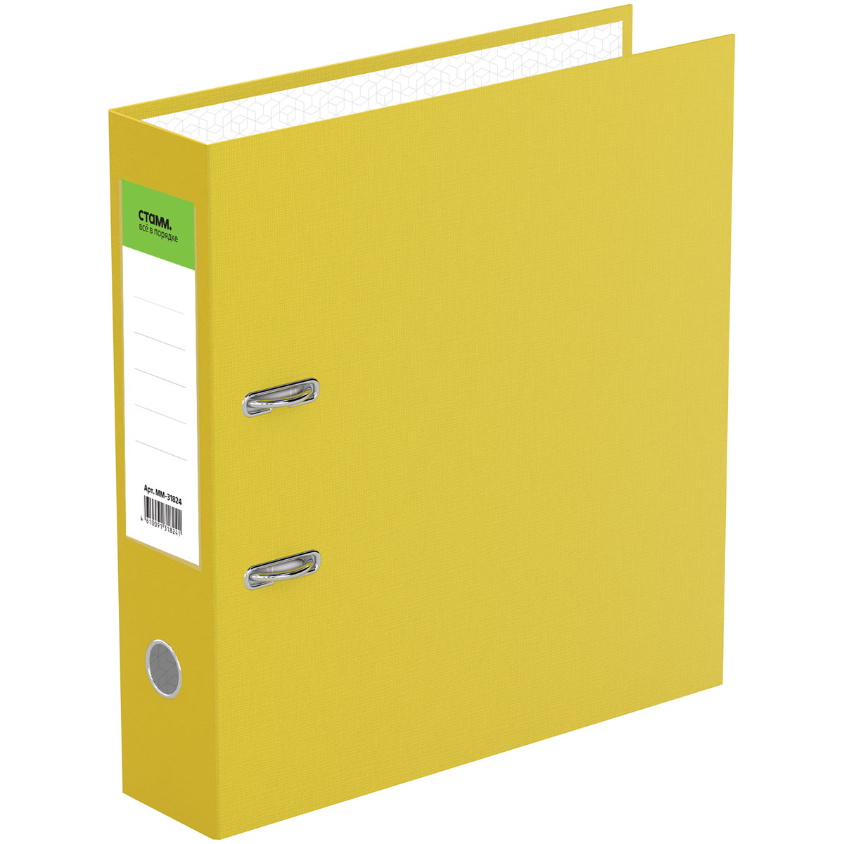 Папка-регистратор «СТАММ» серии «Стандарт» формата А4 с арочным механизмом идеальна для создания архива и экономии офисного пространства. Папка вмещает до 550 листов. Размер папки – 320*290*70 мм. Ориентация папки – вертикальная. Ширина корешка составляет 70 мм. Минималистичный классический дизайн: папка выполнена в насыщенном жёлтом цвете. Изготовлена из жесткого износостойкого картона с односторонним покрытием из бумвинила. Папка имеет арочный механизм из качественного металла. Конструкция разработана с учетом всех особенностей эксплуатации. Эргономичное отверстие в корешке помогает быстро снять папку с полки. На корешке папки есть карман со сменным информационным ярлыком для маркировки. На внутренней стороне обложки папка-регистратор имеет поле для записи. • Вместимость, в листах: 550; • Формат: А4; • Цвет: жёлтый; • Ширина корешка: 70 мм