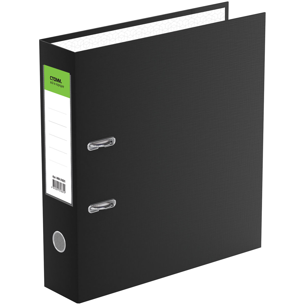 Папка-регистратор «СТАММ» серии «Стандарт» формата А4 с арочным механизмом идеальна для создания архива и экономии офисного пространства. Папка вмещает до 550 листов. Размер папки – 320*290*70 мм. Ориентация папки – вертикальная. Ширина корешка составляет 70 мм. Минималистичный классический дизайн: папка выполнена в насыщенном чёрном цвете. Изготовлена из жесткого износостойкого картона с односторонним покрытием из бумвинила. Папка имеет арочный механизм из качественного металла. Конструкция разработана с учетом всех особенностей эксплуатации. Эргономичное отверстие в корешке помогает быстро снять папку с полки. На корешке папки есть карман со сменным информационным ярлыком для маркировки. На внутренней стороне обложки папка-регистратор имеет поле для записи. • Вместимость, в листах: 550; • Формат: А4; • Цвет: чёрный; • Ширина корешка: 70 мм