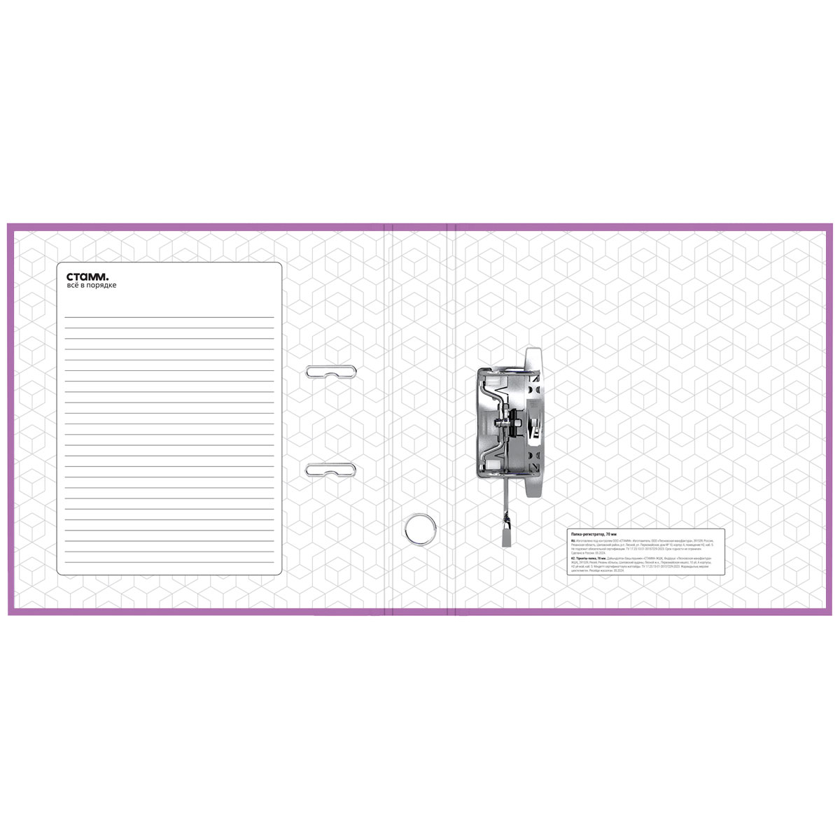 Папка-регистратор «СТАММ» серии «Стандарт» формата А4 с арочным механизмом идеальна для создания архива и экономии офисного пространства. Папка вмещает до 550 листов. Размер папки – 320*290*70 мм. Ориентация папки – вертикальная. Ширина корешка составляет 70 мм. Минималистичный классический дизайн: папка выполнена в насыщенном сиреневом цвете. Изготовлена из жесткого износостойкого картона с односторонним покрытием из бумвинила. Папка имеет арочный механизм из качественного металла. Конструкция разработана с учетом всех особенностей эксплуатации. Эргономичное отверстие в корешке помогает быстро снять папку с полки. На корешке папки есть карман со сменным информационным ярлыком для маркировки. На внутренней стороне обложки папка-регистратор имеет поле для записи. • Вместимость, в листах: 550; • Формат: А4; • Цвет: сиреневый; • Ширина корешка: 70 мм