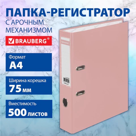 Папка-регистратор BRAUBERG PASTEL ламинированная, 75 мм, цвет персиковый, 271838