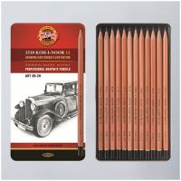 Набор карандашей ч/г Koh-I-Noor "1512", 8B-2H, 12шт, металл.пенал, с неокрашенным корпусом 1512N12001PL 330095