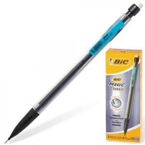 Карандаш механический со специальным ластиком BIC Matic Grip со стержнем HB толщиной 0,7 мм. Длина письма в 2 раза дольше, чем у обычных чернографитовых карандашей. Мягкое непрерывное письмо. 3 стержня внутри каждого карандаша.