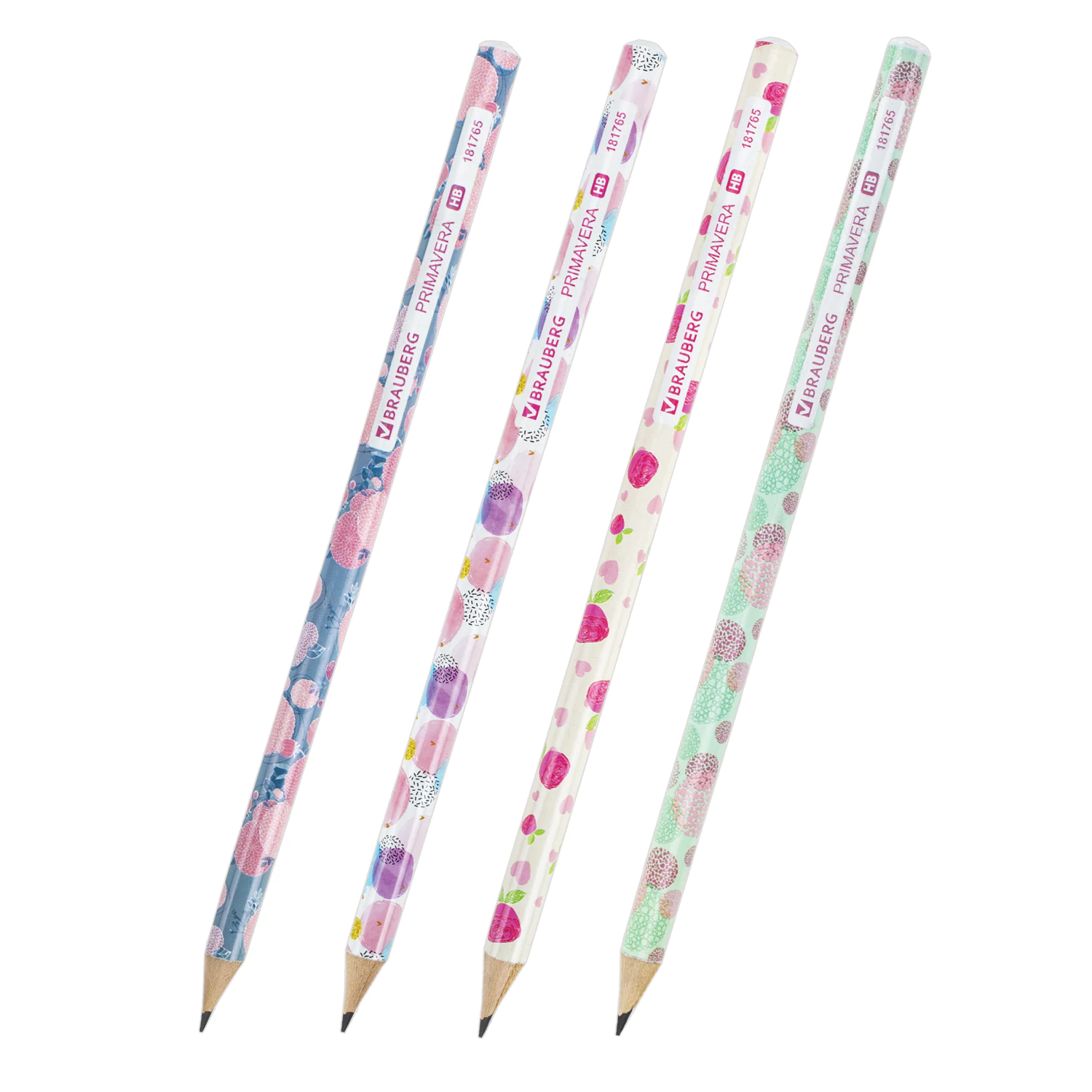 Карандаш чернографитный BRAUBERG "PRIMAVERA" - первый помощник для выполнения различных заметок. Позволяет сделать легкий набросок, быстрый стремительный рисунок или нарисовать полноценную картину. Используется повсеместно.Каждый карандаш имеет индивидуальный штрих-код. Легко затачивается, максимально устойчив к повреждениям. Изготовлен из дерева высокого качества. Имеет круглое сечение. Карандаш длиной 172 мм обладает средней степенью твердости – HB. Корпус покрыт цветной печатью ассорти в 4 дизайнах.