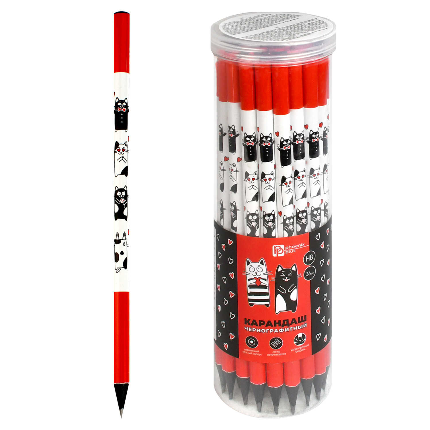 Карандаш чернографитный арт. 70081 / 36 ЧЕРНО-БЕЛЫЕ КОТЫ (ПЭТ-тубус, 36 шт., ассорти, твердость грифеля: HB, размер: 171*7,5 мм, форма корпуса: круглая, материал корпуса: черное дерево, покрытие корпуса: матовое прозрачное, цвет корпуса: чёрный, белый