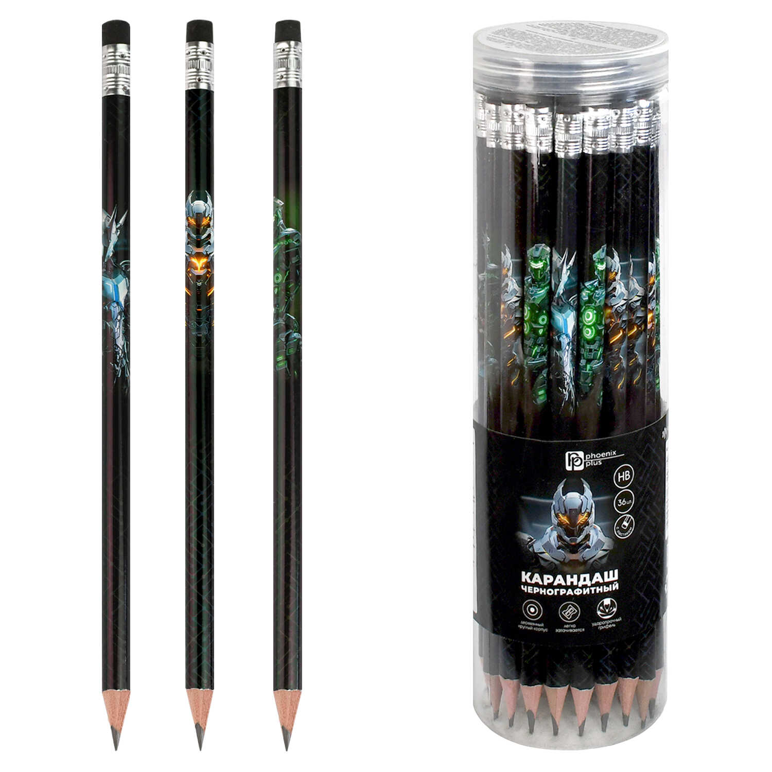 Карандаш чернографитный арт. 70083 / 36 ОГНЕННЫЙ РОБОТ (ПЭТ-тубус, 36 шт., ассорти, твердость грифеля: HB, размер: 188*7,5 мм, форма корпуса: круглая, материал корпуса: светлое дерево, покрытие корпуса: матовое прозрачное, цвет корпуса: чёрный