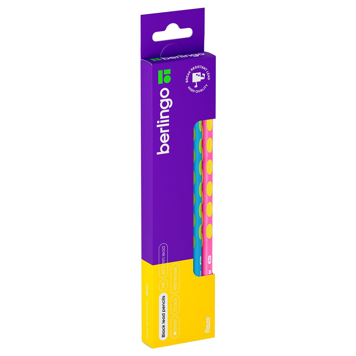 Чернографитный ударопрочный карандаш Berlingo "Raze" из гибкого пластика с ластиком станет отличным помощником в учебе и работе. Уже заточен. Диаметр грифеля составляет 2,2мм, твердость – HB. Трехгранный эргономичный корпус диаметром 7 мм со специальными выемками в корпусе для более крепкого хвата. Уникальный яркий цветной материал пластика, использованного при изготовлении корпуса, сохраняется при заточке. 4 цвета ассорти. Грифель не ломается при падении. Безопасен для детей, в случае разлома, не оставляет мелких и острых фрагментов. Карандаш подходит для черчения и рисования. На корпусе карандаша есть штрих-код. Упакованы в картонную коробку по 12 штук.