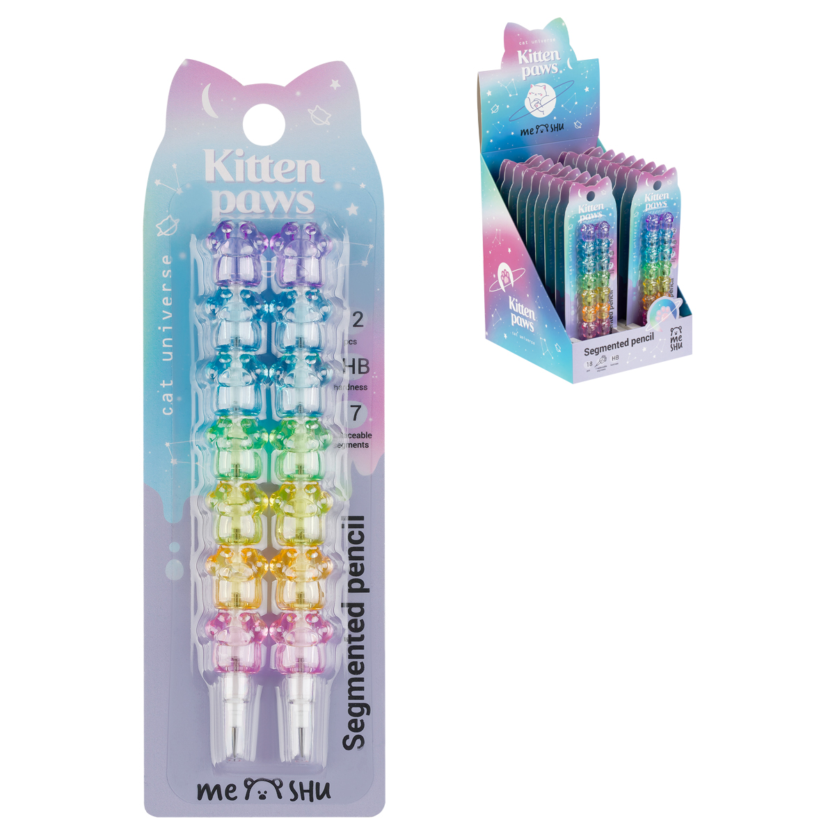 Набор чернографитных сегментных карандашей MESHU Paws – это долговечный, практичный и необычный инструмент, который порадует своим видом в школе, офисе или дома. Набор карандашей предназначен для рисования, чертежных и графических работ. Твердость грифеля – HB. В одном карандаше 7 сменных сегментов, которые, при необходимости, можно быстро переставить местами и не использовать точилку. Стильная форма корпуса в виде лапки делает карандаш ярче и интереснее. В наборе представлены 2 карандаша в блистере с уникальным дизайном.