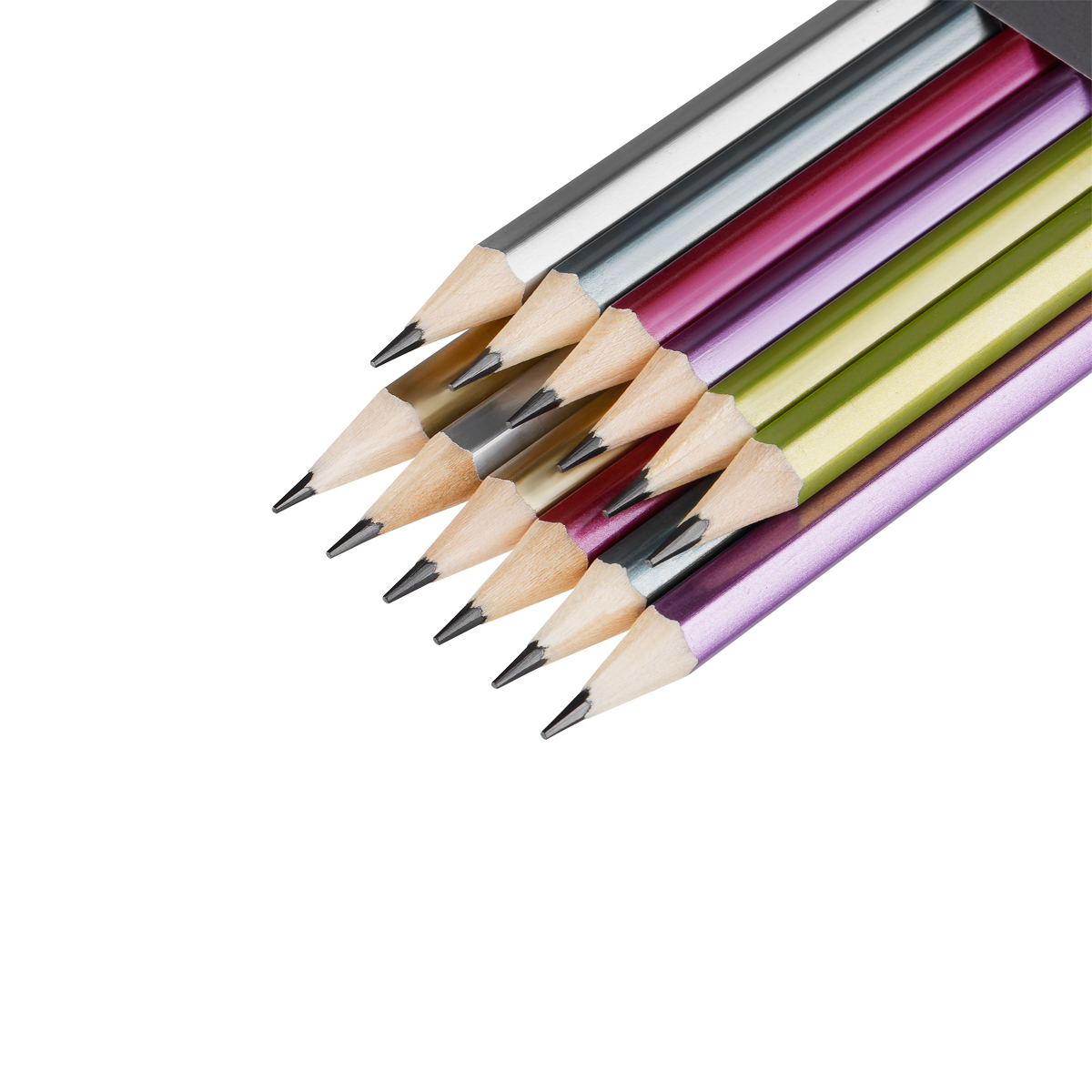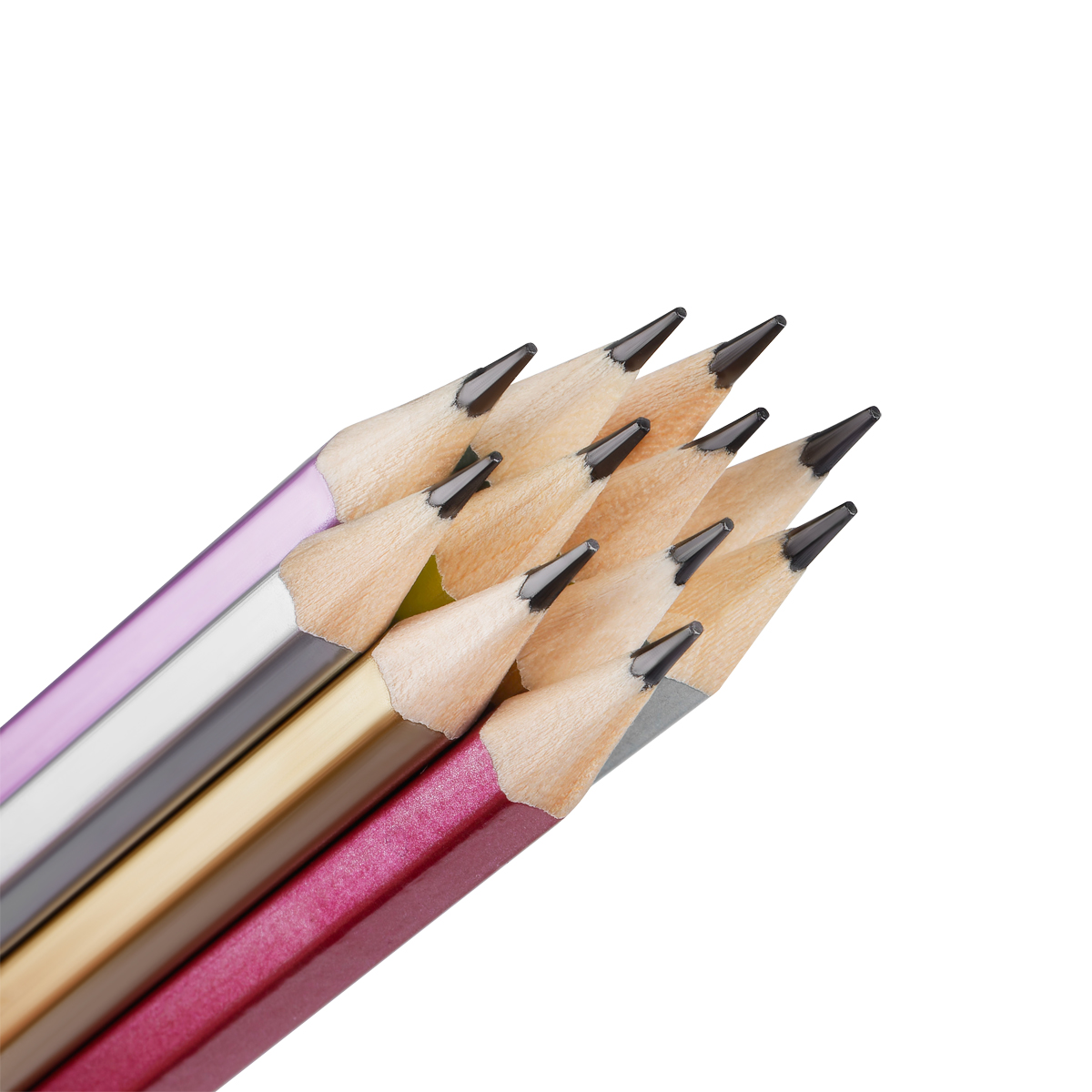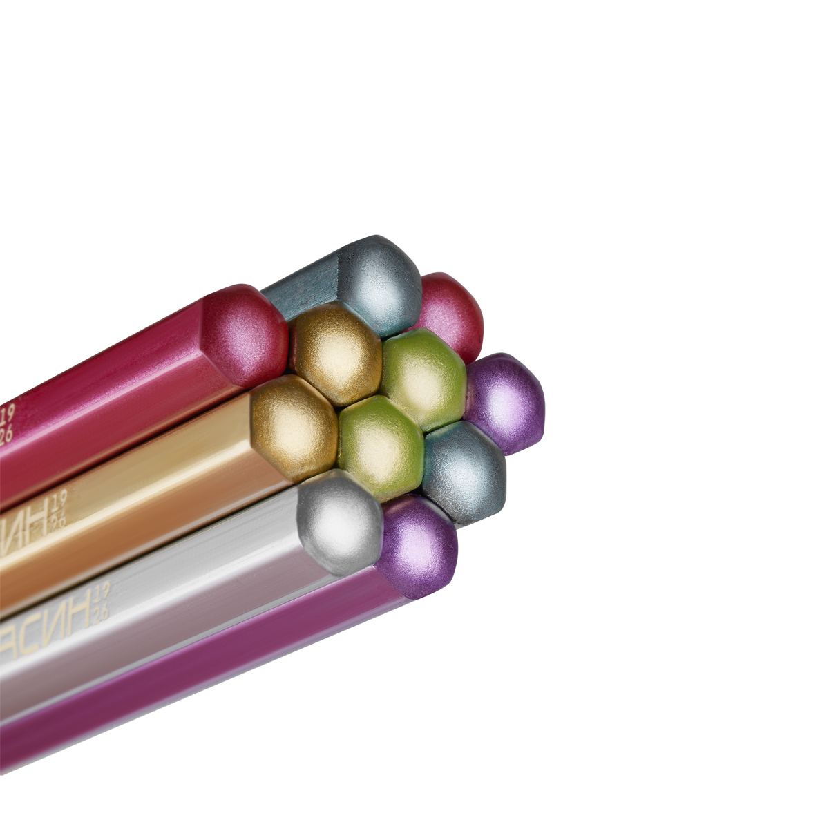 Описание: Карандаши чернографитные «Красин» серии «Металлик». Ассорти из шести цветов корпуса с эффектами металлик: золотой, серебряный, сиреневый, розовый, голубой, зеленый. Корпус выполнен из древесины липы высокого качества. Карандаши легко затачиваются и устойчивы к повреждениям. Качественный состав грифеля обеспечивает мягкое письмо, яркую и однородную линию на бумаге, легко стирается ластиком. Карандаши имеют удобную шестигранную форму. Карандаши поставляются в картонной коробке по 12 штук, на каждом есть индивидуальный штрих-код на корпусе.