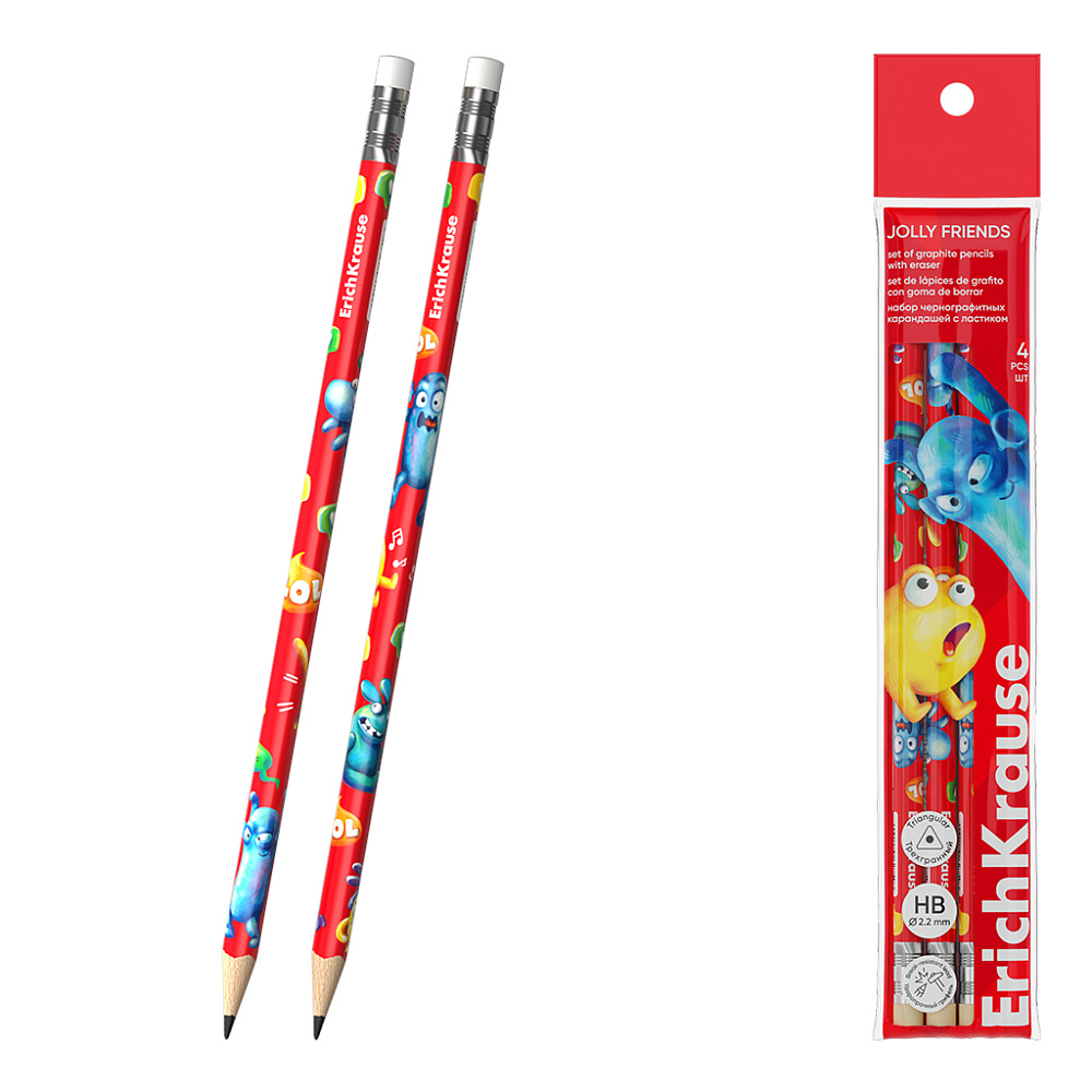 Набор эргономичных трехгранных чернографитных карандашей из отборной древесины с ластиком, твердость ТМ. Специальная пропитка древесины и сплошная проклейка грифеля обеспечивает высокую ударопрочность. Мягкая древесина и идеальная центровка грифеля гарантируют легкую заточку с экономным расходом карандаша. Грифель диаметром 2.2 мм не царапает бумагу и не крошится. Ластик карандаша средней жесткости изготовлен из экологически чистого и гипоаллергенного материала термопластичной резины (ТПР). Не содержит ПВХ. Длина 188 мм.