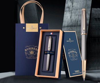 Ручка в футляре TJ-45 Montagut (син) 0.5мм роллер, Черная с золотом и рисунком, металлический корпус, в к/кор М302