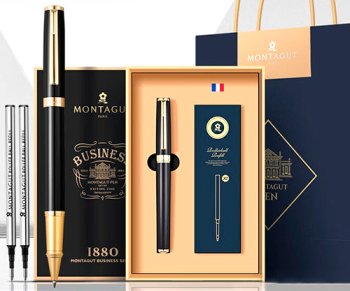 Ручка в футляре TJ-73 Montagut (син) 0.5мм роллер, Черная c золотом, металлический корпус, 2 сменных стержня, в к/к M301-1