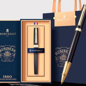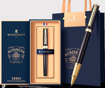 Ручка в футляре TJ-74 Montagut (син) 0.5мм роллер, Черная c золотом, металлический корпус, в к/к M30