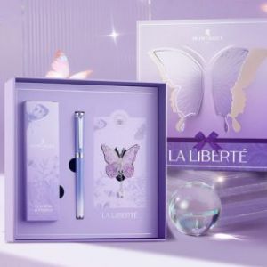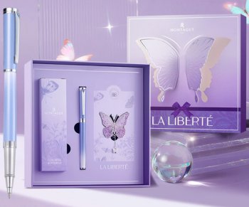 Ручка в футляре TJ-95 Montagut (син) 0,6мм роллер, Темно-голубая градиент, корпус металл + чехлом, закладка "Бабочка", в к/к №702А